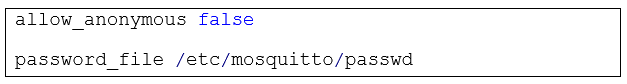 Konfigurasi default biasanya tanpa keamanan. Untuk produksi atau IoT yang terhubung ke internet, disarankan menambahkan: