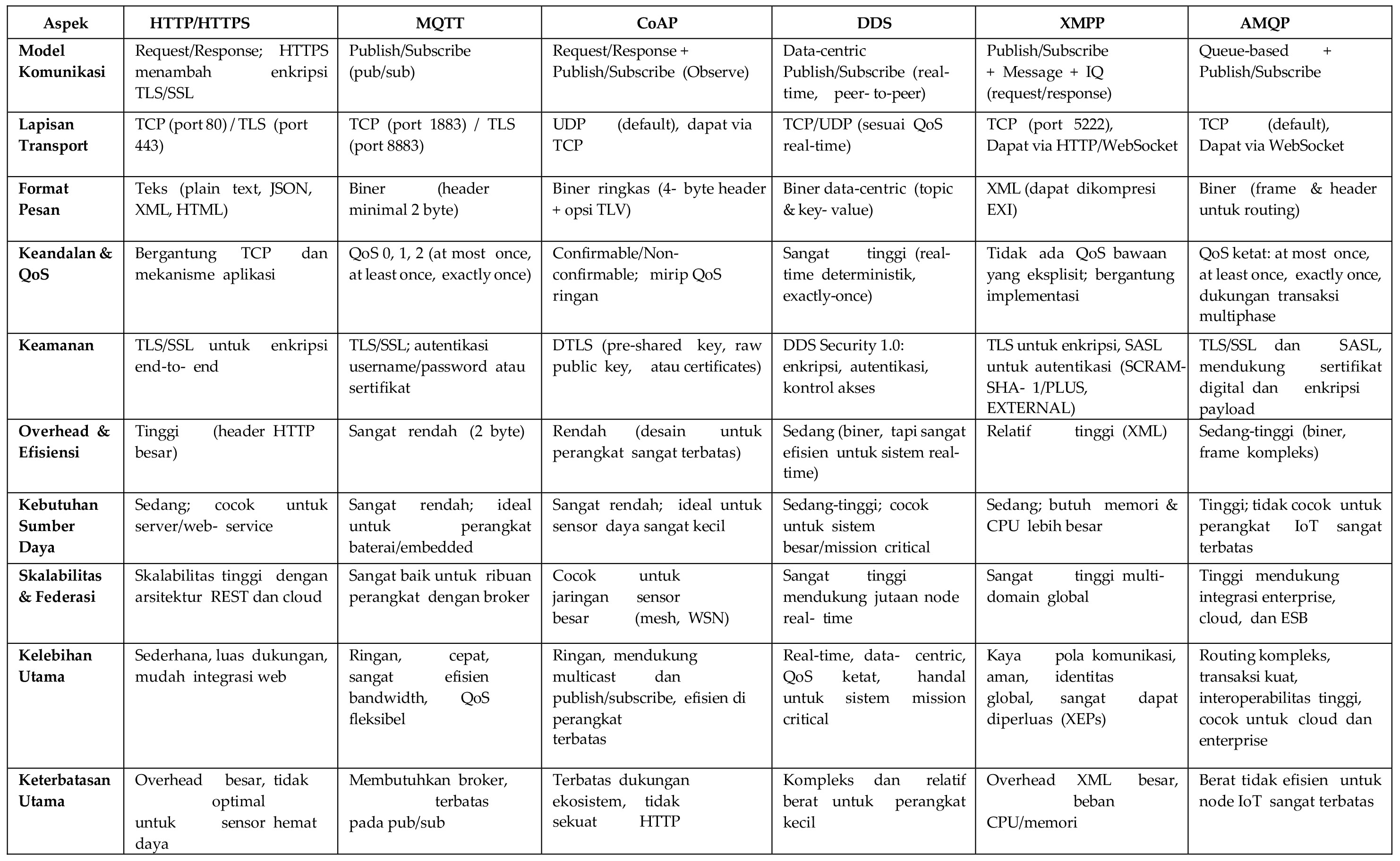 Tabel 1. Ringkasan Perbandingan Protokol IoT