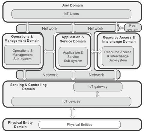 - Operations & Management Domain untuk menanganinya operasi, manajemen, dan pemeliharaan sistem IoT secara menyeluruh.