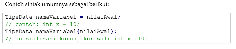 - Bersifat case-sensitive dengan contoh: variabel dengan nama ”data” berbeda dengan ”Data”.