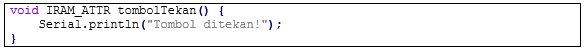 1. ISR (Interrupt Service Routine): Fungsi khusus yang dieksekusi saat interrupt dipicu. ISR harus singkat dan efisien. Berikut adalah contohnya: