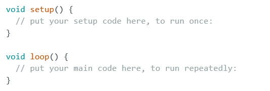 Pada platform Arduino, setiap sketch (berkas .ino) minimal memiliki dua fungsi utama: setup(), dan loop(). Fungsi utama setup() dijalankan sekali saat board menyala atau di-reset. Sedangkan fungsi loop() dijalankan secara berulang-ulang selama board aktif. Sebenarnya ada fungsi main() (disediakan oleh core Arduino), yang memanggil setup() satu kali lalu terus memanggil loop(). Namun, pembuat kode program cukup fokus pada fungsi utama setup() dan loop().