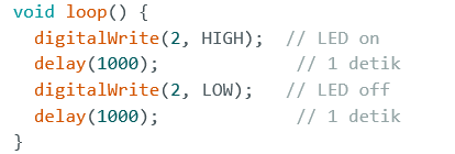 Setelah setup() selesai dieksekusi satu kali, runtime Arduino memanggil loop() dan menjalankan instruksi di dalamnya berulang-ulang tanpa henti selama board menyala (hingga dimatikan atau di-reset). Artinya, urutan perintah di loop() akan terus diulang dengan pola yang sama. Namun perlu diingat bahwa pemakaian delay() atau kode yang memblokir akan memperlambat putaran loop() (pada ESP32 sebaiknya hindari blocking panjang agar tugas lain seperti Wi-Fi tetap responsif).